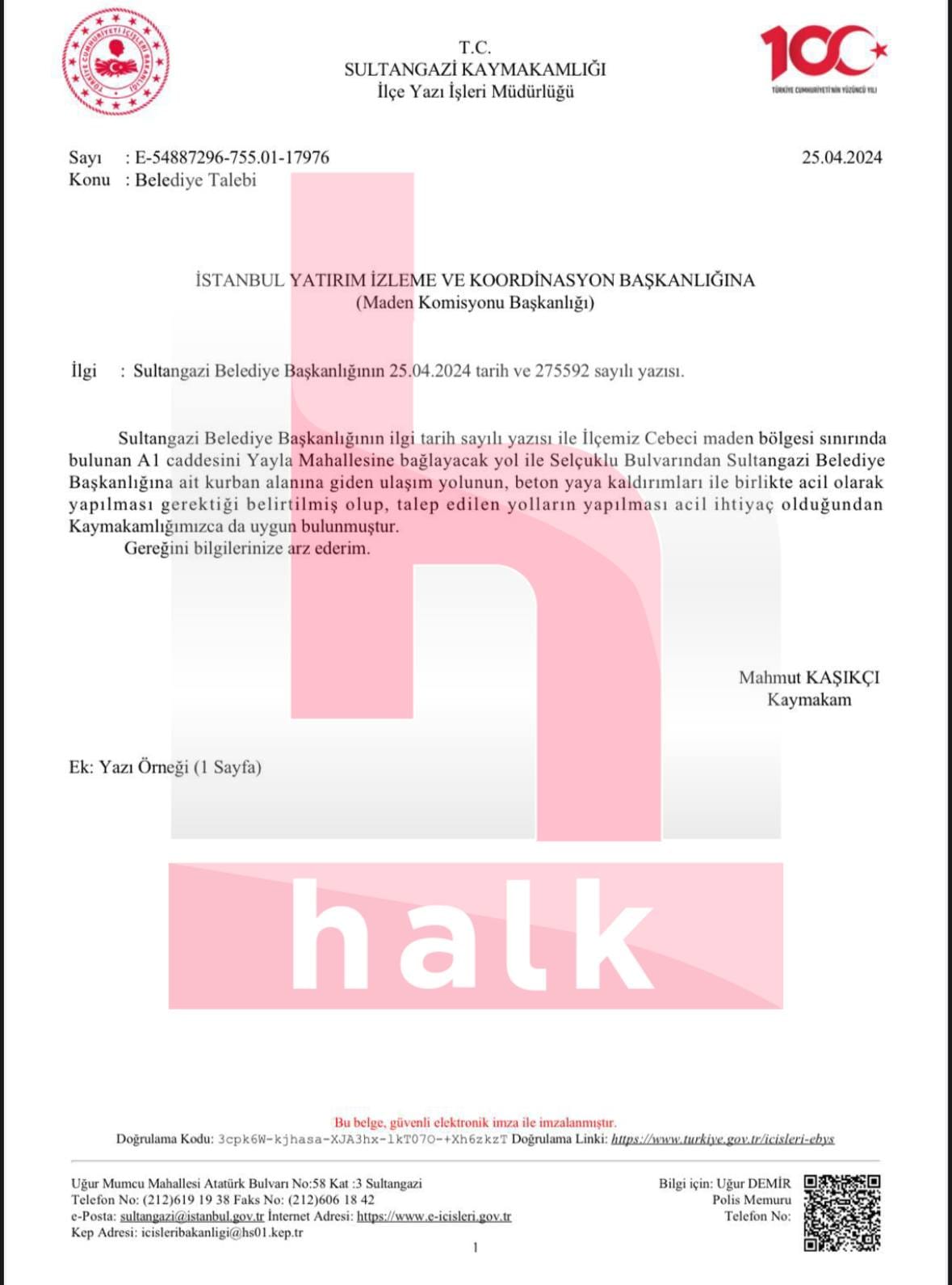 Sultangazi Belediyesi’nin bu talebi üzerine aynı gün (25.04.2024) harekete geçen Sultangazi Kaymakamlığı, talebi İstanbul Valiliği Yatırım İzleme ve Koordinasyon Başkanlığı’na (YİKOB) iletiyor.