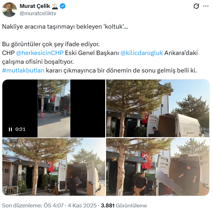 Kılıçdaroğlu’nun mevcut ofisinin satıldığı ve Mustafa Kemal Mahallesi’nde yeni bir ofis tuttuğu öğrenildi.