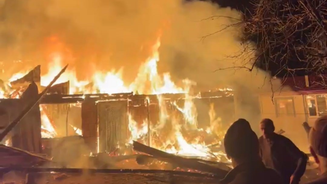 Yangın sonucunda iki ahşap ev tamamen yanarak kullanılamaz hale geldi. Olayla ilgili inceleme başlatıldı.